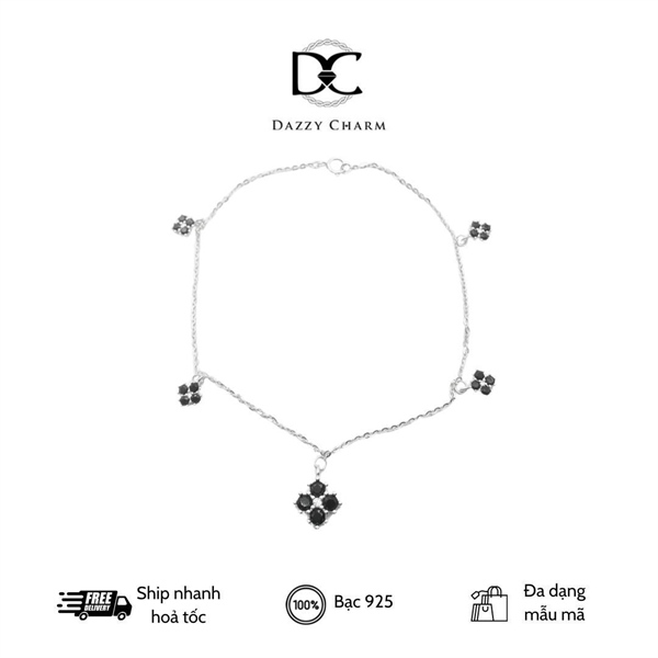 Lắc chân bạc Dazzy hoa 4 cánh (đen)